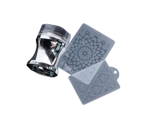 Штамп для стемпинга серебро, два скребка в наборе