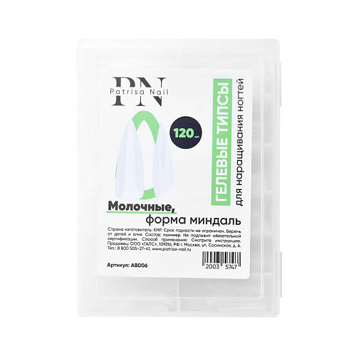 Гелевые типсы Patrisa Nail молочные форма миндаль, 120шт