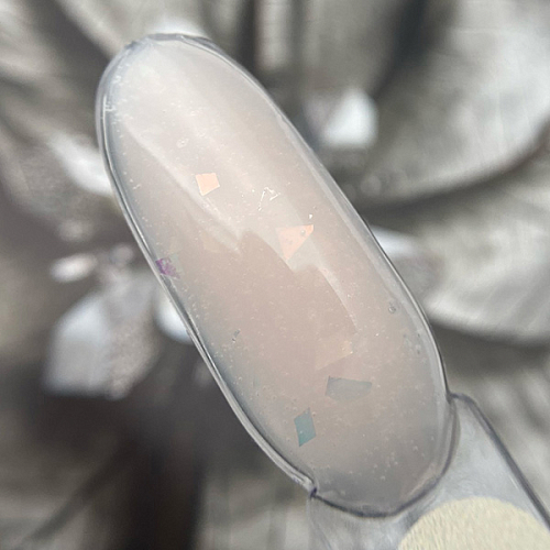 Классический формат жёстких гелей + жидкая консистенция + нежный вуальный оттенок + битое стекло = материал 2в1, который обладает высокой прочностью, а выглядит при этом волшебно красиво!