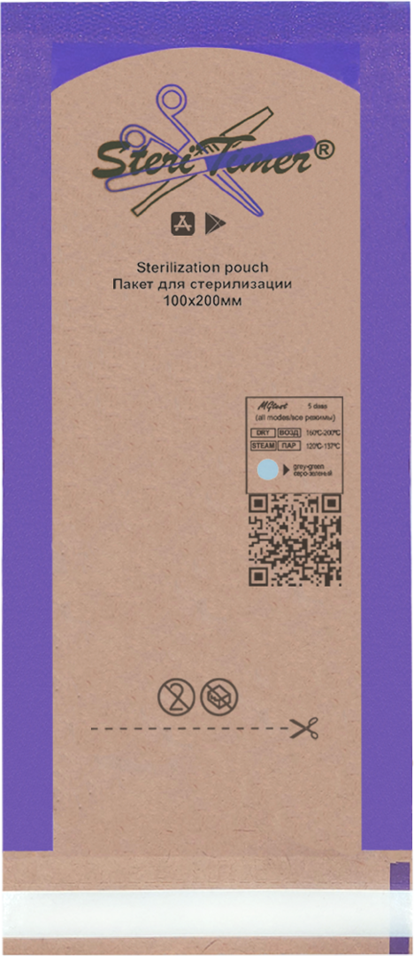 Крафт пакет SteriTimer с прозрачной стенкой 100*200, 100шт