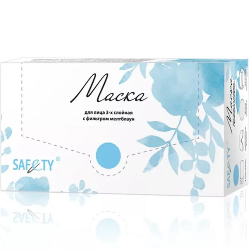 Маски SAFETY 3-х слойные голубые, 50шт