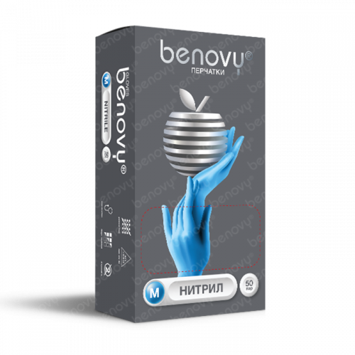 Перчатки BENOVY нитриловые голубые S, 50пар