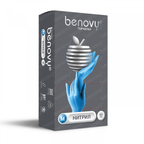 Перчатки BENOVY нитриловые голубые XS, 50пар