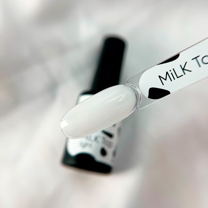 Milk Top Light - это глянцевый топ вуального молочного оттенка для создания мягкого кругового градиента, аккуратных растяжек и других дизайнов, где требуется использование легкого молочного цвета.