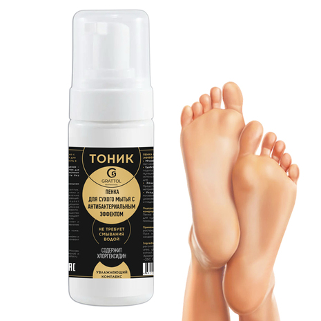Тоник пенка для сухого мытья ног Grattol Antibacterial, 160мл