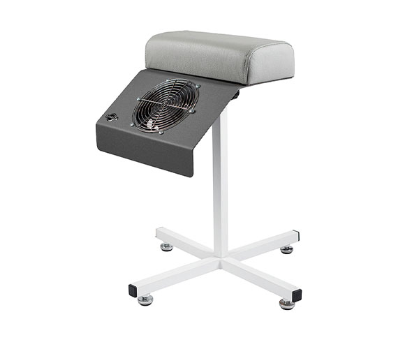 Педикюрный пылесос крепится к стойке, благодаря чему стопа клиента находится в удобном положении относительно зоны всасываемости опила.