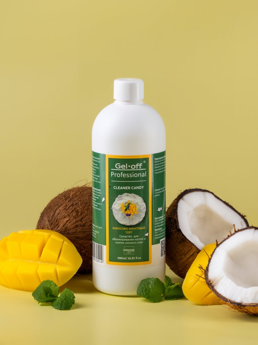 Обезжириватель для ногтей GEL OFF CANDY (кокосово манговый торт), 500мл