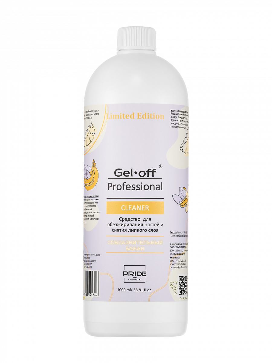 Обезжириватель для ногтей GEL OFF CLEANER, СОБЛАЗНИТЕЛЬНЫЙ БАНАН, 1000 мл
