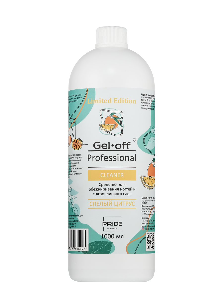 Обезжириватель для ногтей GEL OFF CLEANER, СПЕЛЫЙ ЦИТРУС, 1000 мл